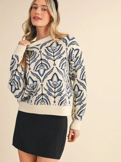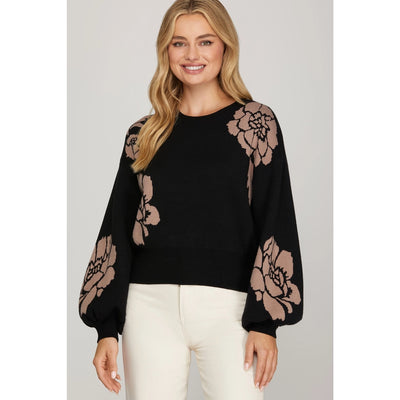 Floral Pattern Knit Sweater