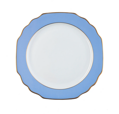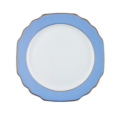 Georgian Colorsheen Light Blue - Gold Banding Ultra White Dinner Plate