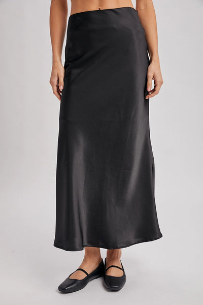 Black Satin Midi Skirt