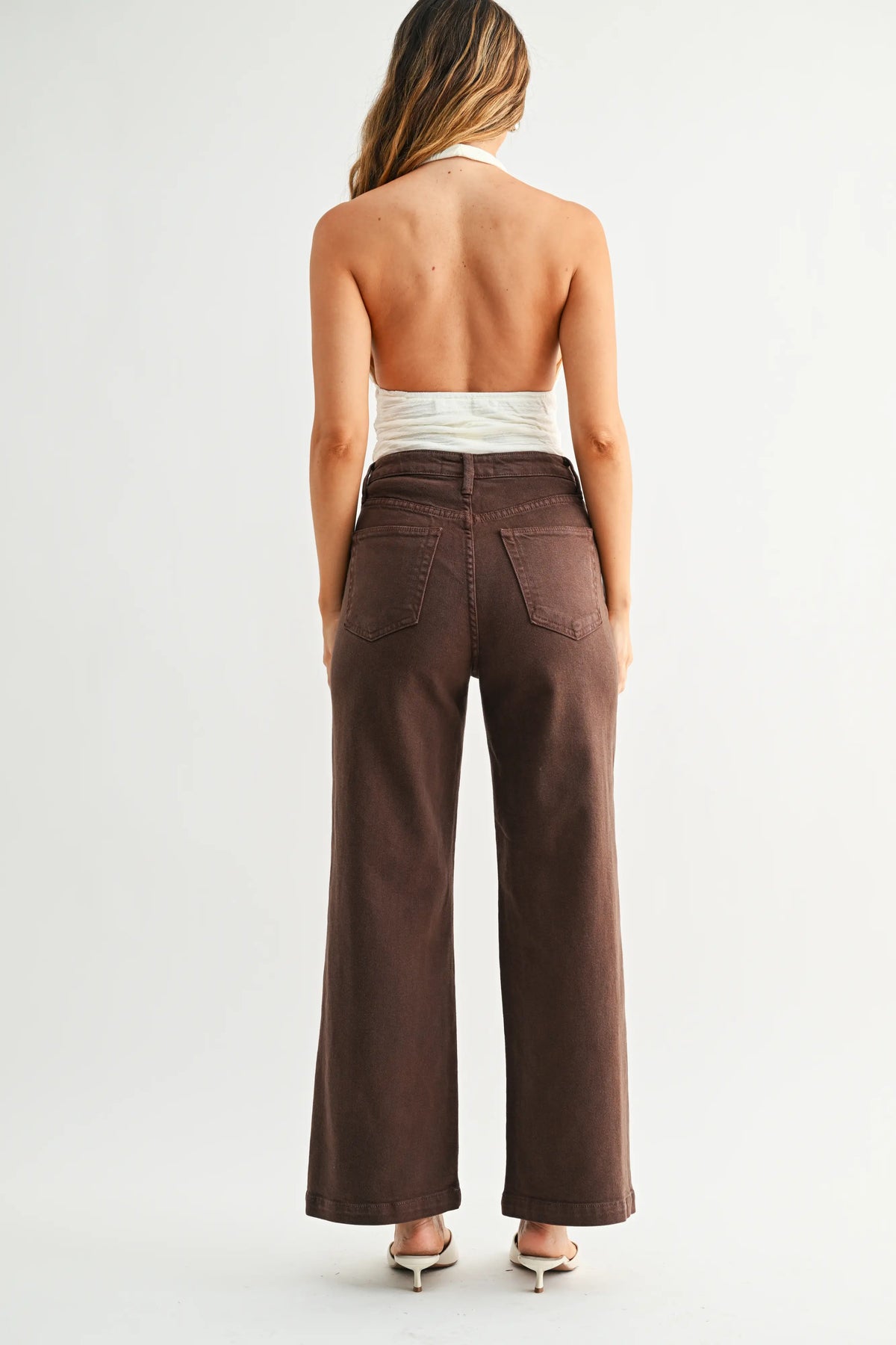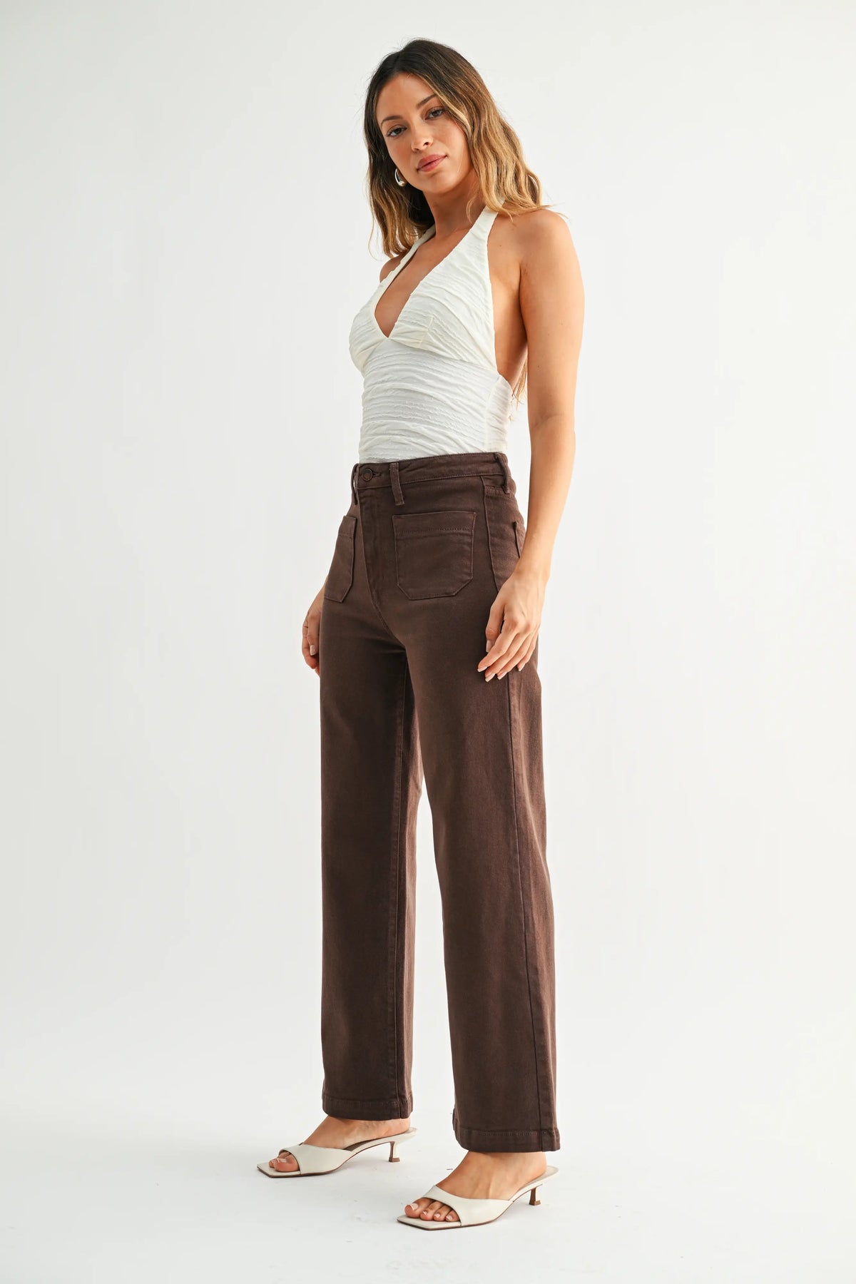 Dark Brown Patch Pocket Wide Leg Jeans.