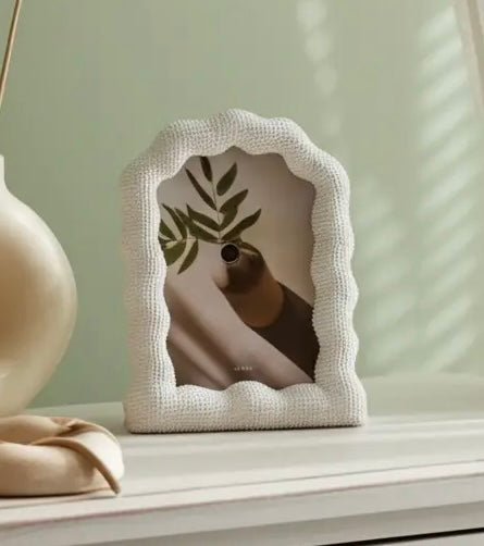 Add charm to any space with this decorative blue resin photo frame, featuring a stylish scalloped edge that brings a whimsical touch to home, office, bedroom, or living room decor while enhancing your photos. Crafted from durable resin, glass, paper, and polyresin, this picture frame is built to last and provides reliable protection for your 5x7 prints, preserving your memories in style for years to come.