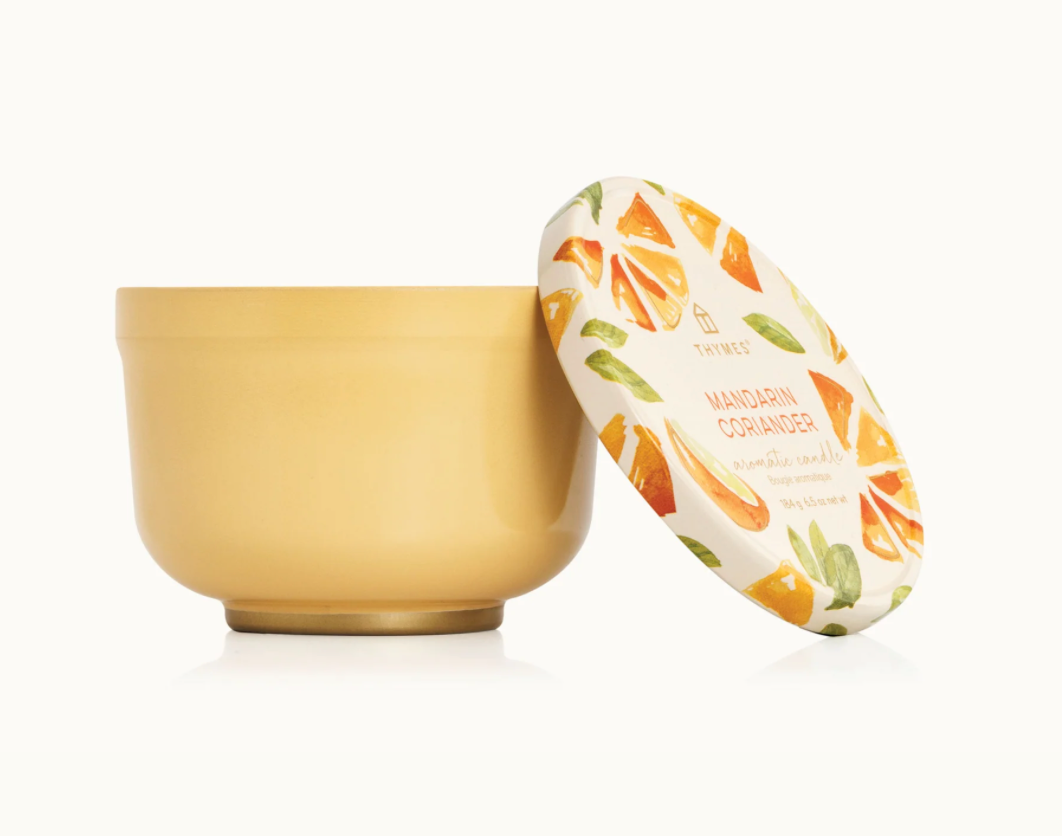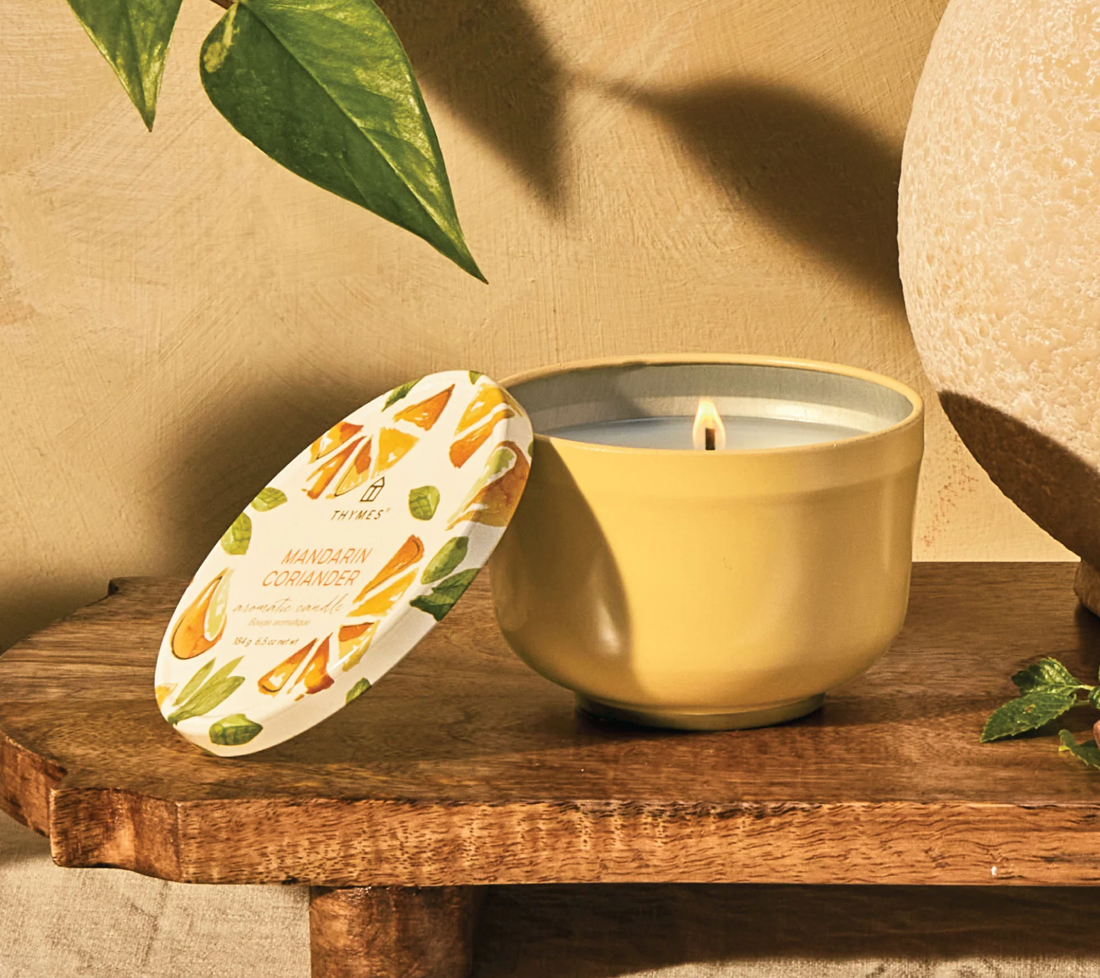 Brighten your home with Mandarin Coriander Poured Candle Tin. Fill your space with an invigorating blend of mandarin oil, coriander, grapefruit, lemon balm, green rosemary leaf, and cedarwood. Featuring up to 32 hours of burn time, a sunny-hued base, and a hand-illustrated lid that visually enhances this one-of-a-kind citrus fragrance. Perfect as the last step in your cleaning routine, it pairs well with other Mandarin Coriander Home Care products.