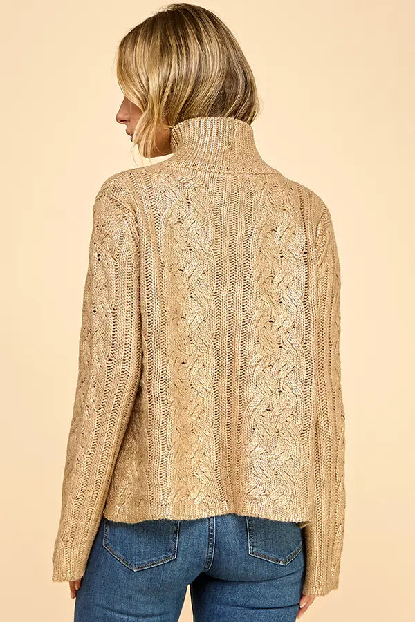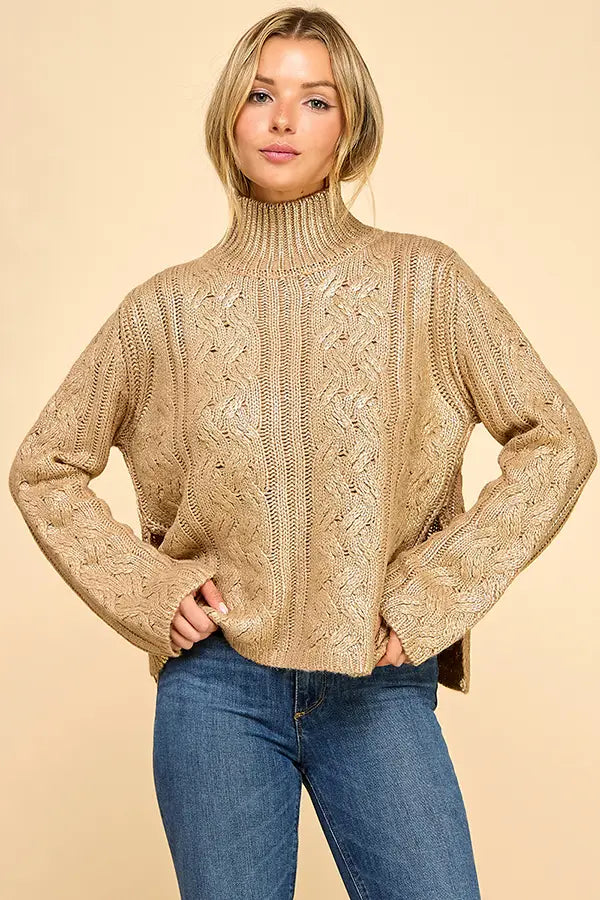 Keep it chic in our foiled sweater top. Featuring a pretty ribbed cable knit design. It's perfect for weekend coffee dates with your girls. Pair it with a mini skirt and boots for a head-turning look.