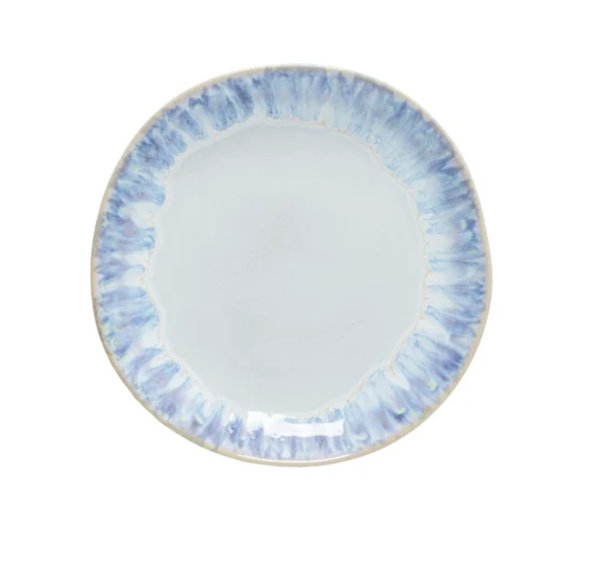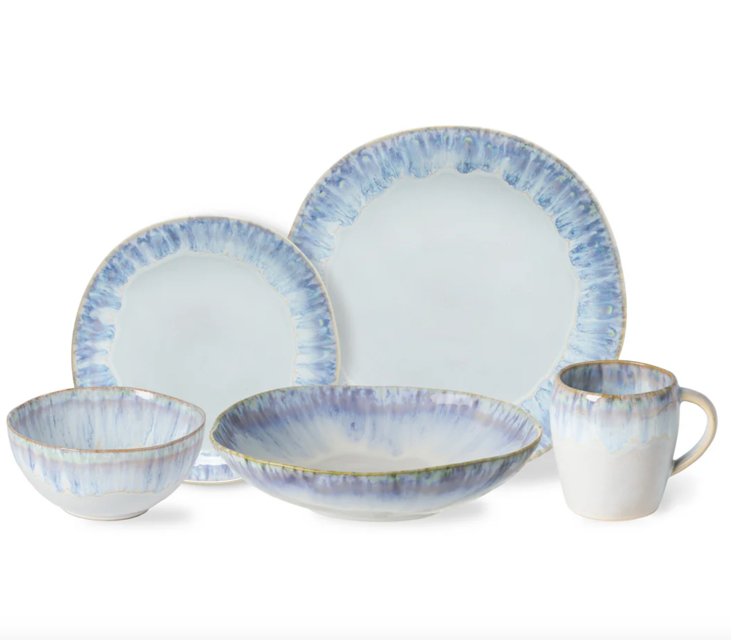 The warm breeze that blows from the east and cascades along the Algarve coast with fruity aromas and the fresh flavors of Ria Formosa was the inspiration for this collection. The blended white and blue glazes and organic shapes transport us to the intricate landscape of lagoons, canals, salt works, and sandy beaches stretching across deserted islands. This collection adds light to every gathering and turns any table into a memorable experience.