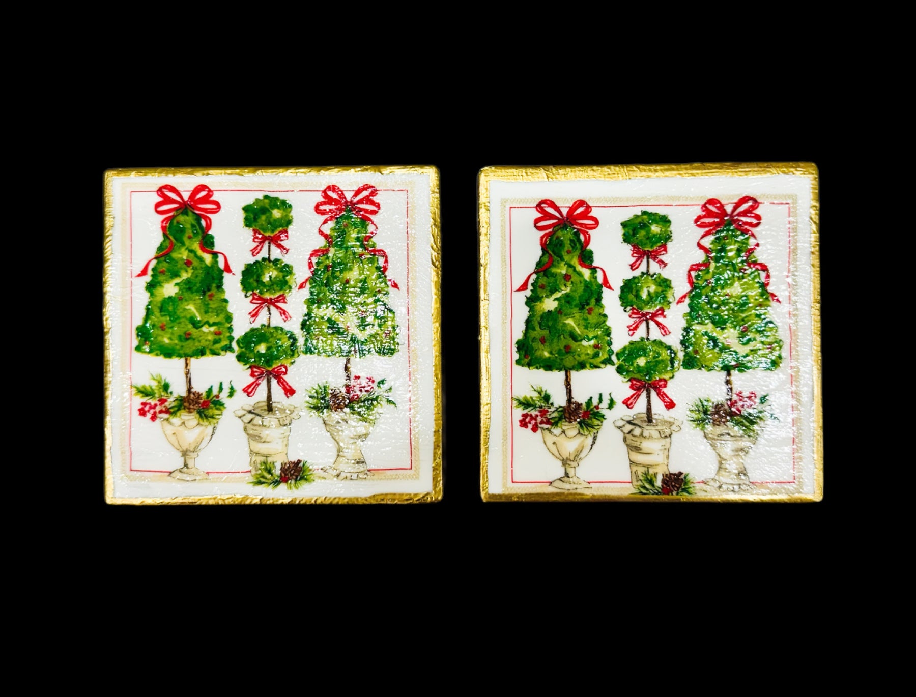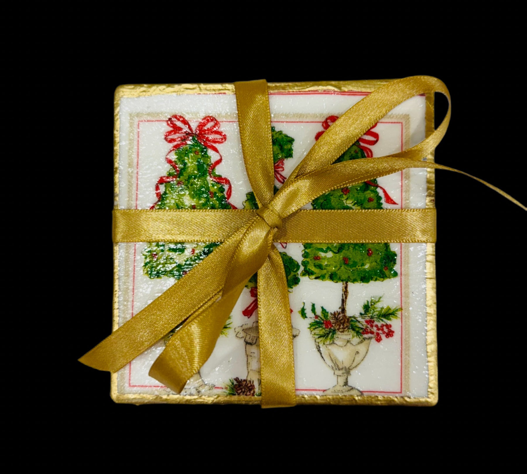 Christmas Topiary Coasters - Set of 2. Made by Vera Valentiner.