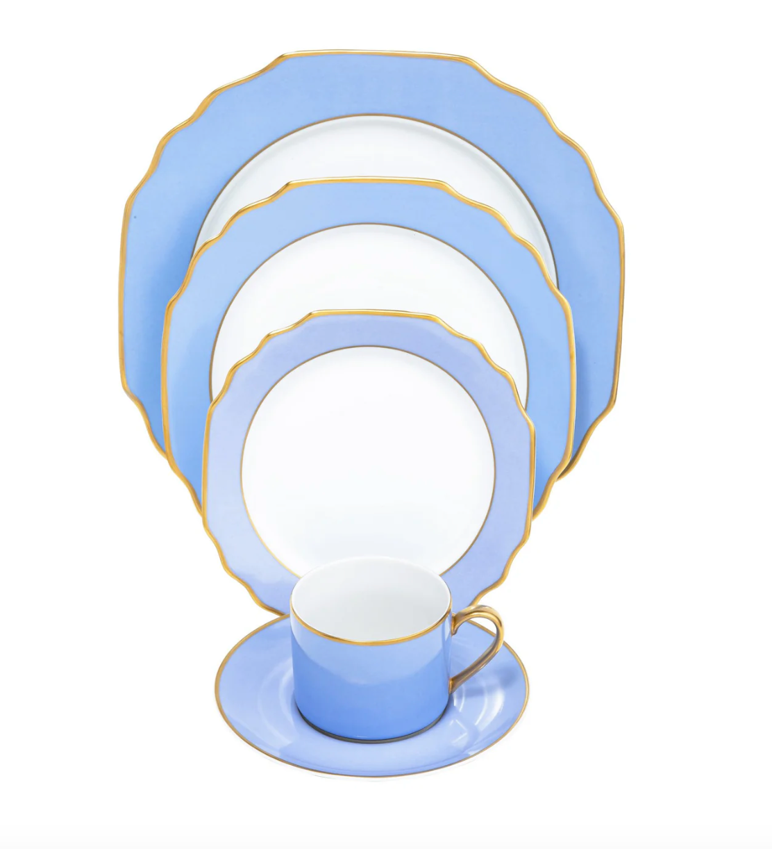 Georgian Colorsheen Light Blue - Gold Banding Ultra White Bread & Butter Plate