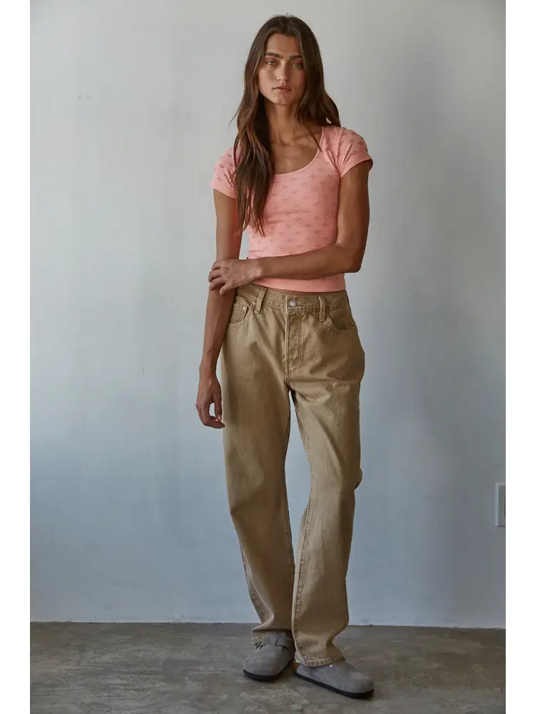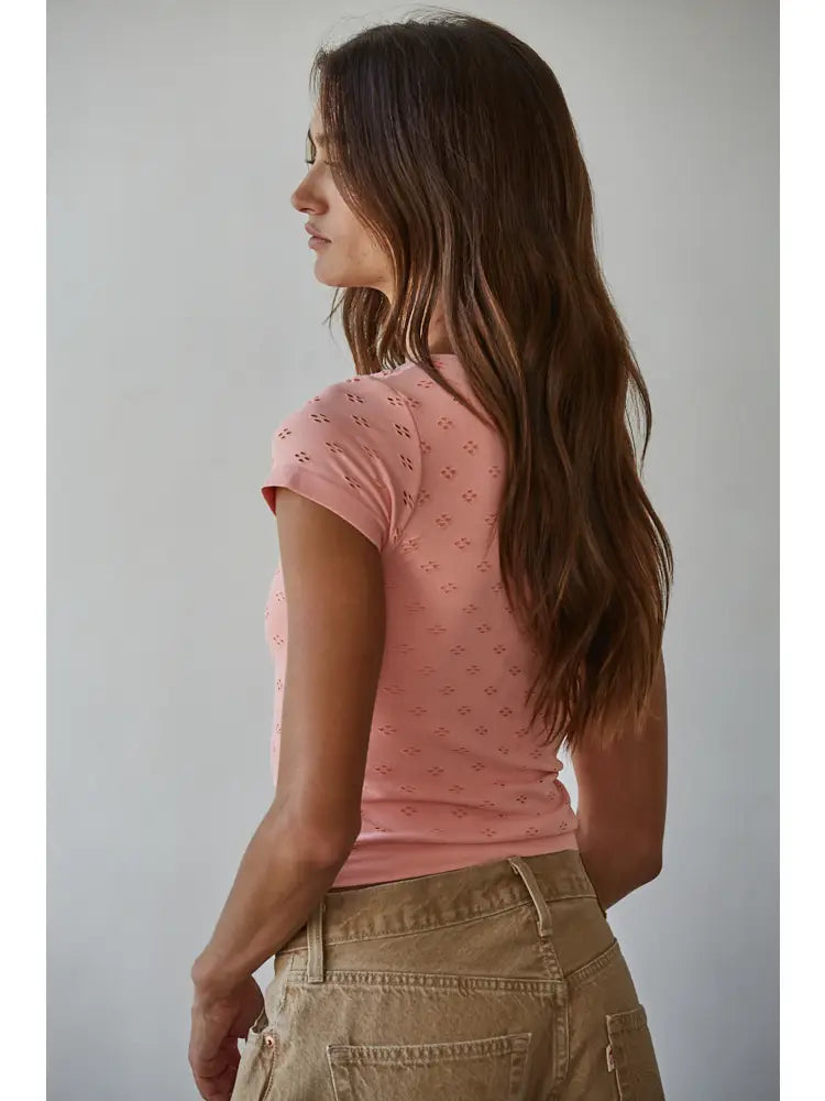 Seamless Eyelet Round Neck Short Sleeve Top With Lining.